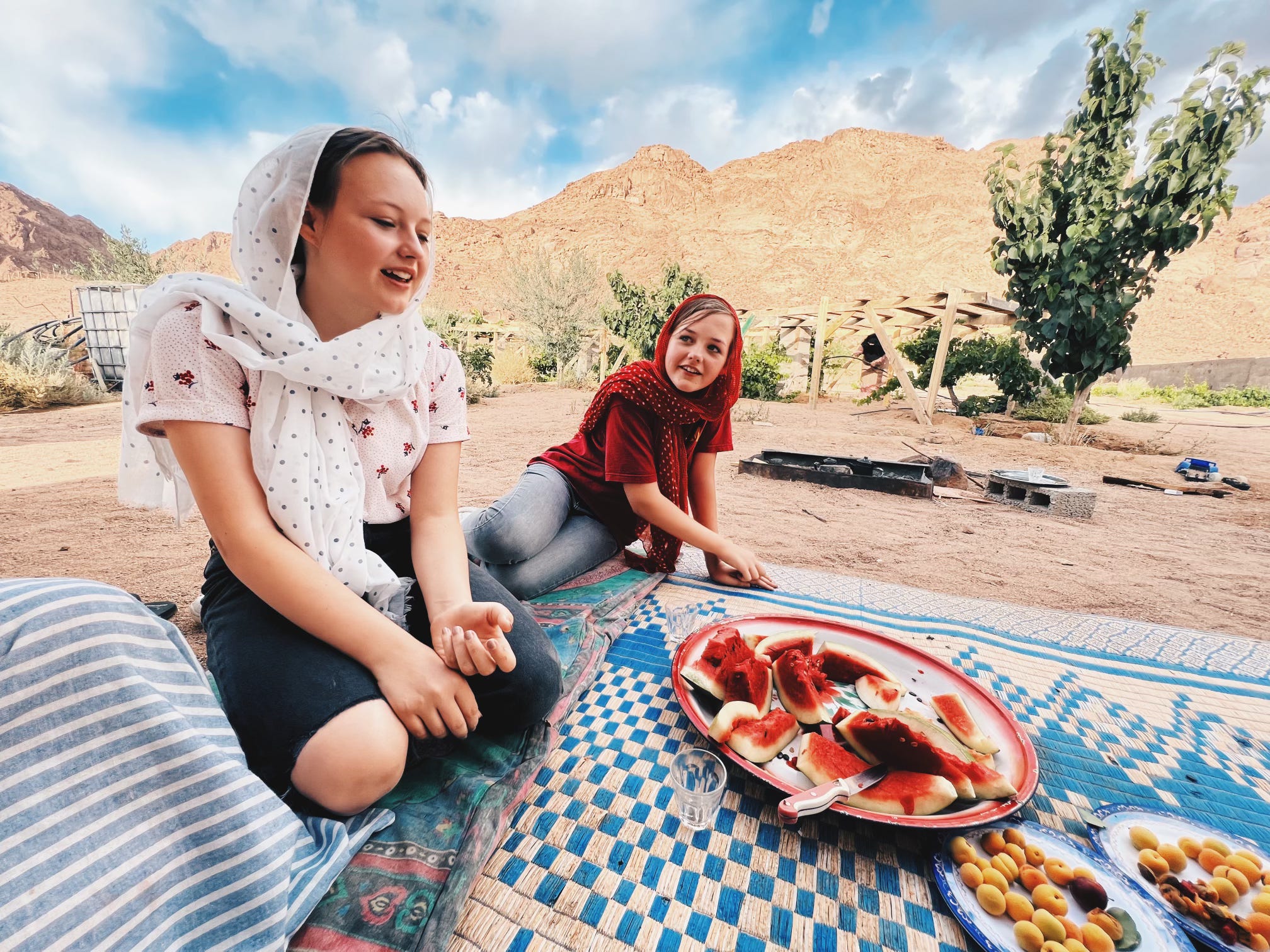 During my research trip to Egypt, my family and I lived for several days in a Bedoin camp in the Sinai peninsula near Mt. Sinai. One day, the owner of the camp told me, "I want you to come see my farm. Almond trees, apricots- you will like it. We can eat from the trees; you will meet my wife and my daughter and son." This was completely out of the blue, as we'd spoken with this gentleman for a total of 5 minutes, but Jennifer and I looked at each other and said, "We'd love to come!"