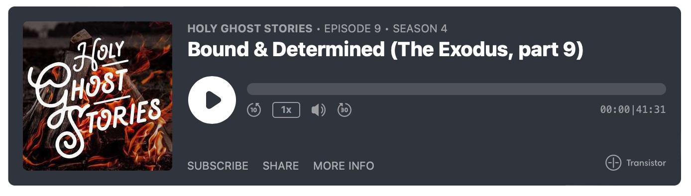 In case you haven’t already listened, I’m delighted to tell you that the second-to-last episode of the Holy Ghost Stories Exodus series has dropped.